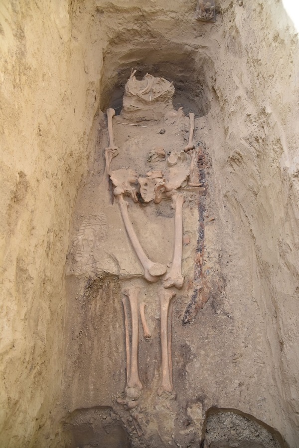 Savaşçının kalıntıları da mezarda bulundu. Açıklamaya göre, kolları ve alt bedeni anatomik düzeninde yerinde olmasına karşın baş, göğüs ve karın bölgesi yağmacılar tarafından “tahrip edilmişti”.