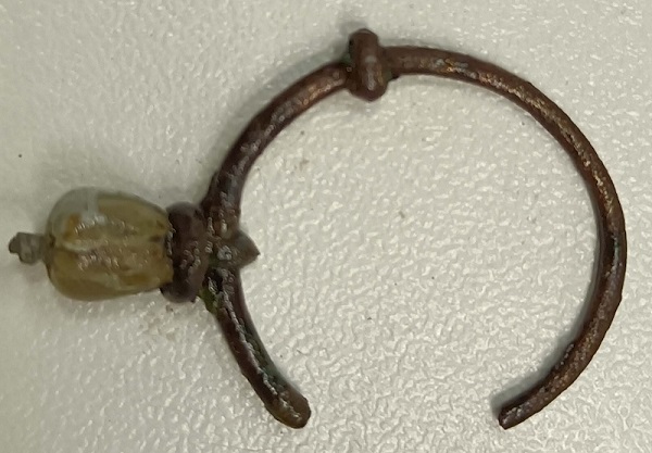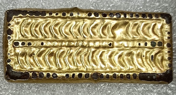 Mezardaki mezar eşyaları arasında, uzun saç şeklinde örülmüş gibi görünen yaldızlı bir metal parçası da vardı. C: Szent István Király Múzeum