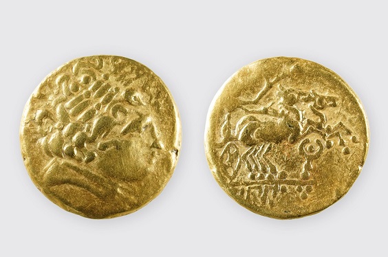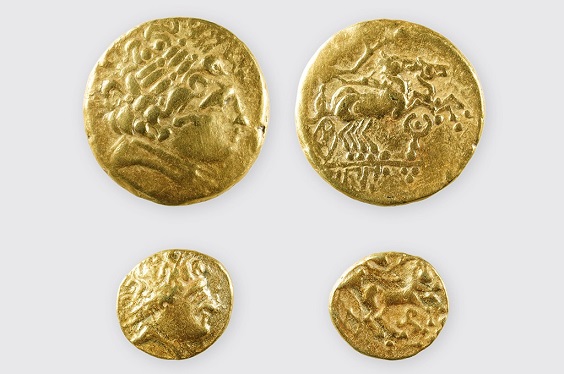 MÖ 3. yüzyılın ortalarında, Kelt grupları Makedonya Kralı II. Philip'in (MÖ 359-336) sikkelerinden esinlenerek kendi altın sikkelerini basmaya başladılar. Orijinal Makedon sikkelerinin ön yüzünde Apollo tanrısının başı, arka yüzünde ise iki atlı bir savaş arabası (biga) tasvir ediliyordu. Kelt darphanecileri bu motifleri benimsedi ancak onları daha soyut, belirgin bir Kelt sanat tarzına dönüştürdüler .
