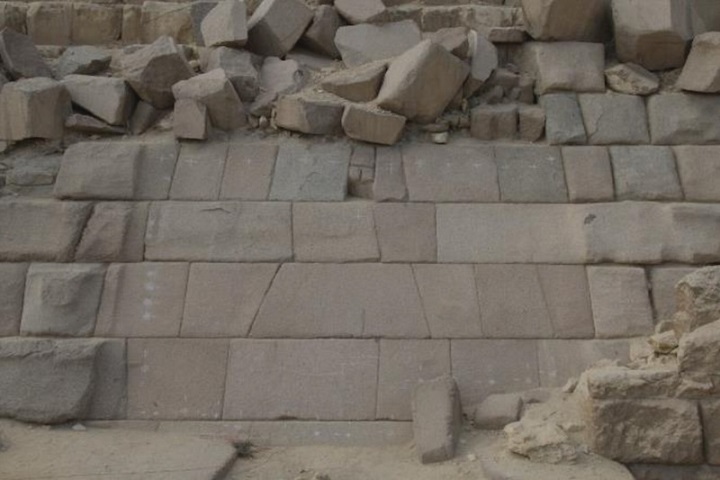 Taşlar, yaklaşık dört metre yüksekliğinde ve altı metre genişliğinde bir alanda dikkat çekici derecede cilalı. Bu kadar düzgün taşlar, şu anda piramidin tek bilinen girişi olan kuzey cephesindeki giriş dışında başka yerde görülmüyor.
