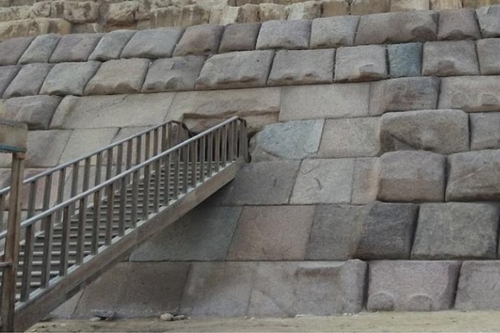 Bir süredir, 60 metreden yüksek Menkaure Piramidi’nin doğu tarafındaki granit blokların yapısı araştırmacıların kafasını kurcalıyordu. Taşlar, yaklaşık dört metre yüksekliğinde ve altı metre genişliğinde bir alanda dikkat çekici derecede cilalı. Bu kadar düzgün taşlar, şu anda piramidin tek bilinen girişi olan kuzey cephesindeki giriş dışında başka yerde görülmüyor. Araştırmacı Stijn van den Hoven, 2019’da ilk kez olası ek bir giriş hipotezini ortaya koymuştu.