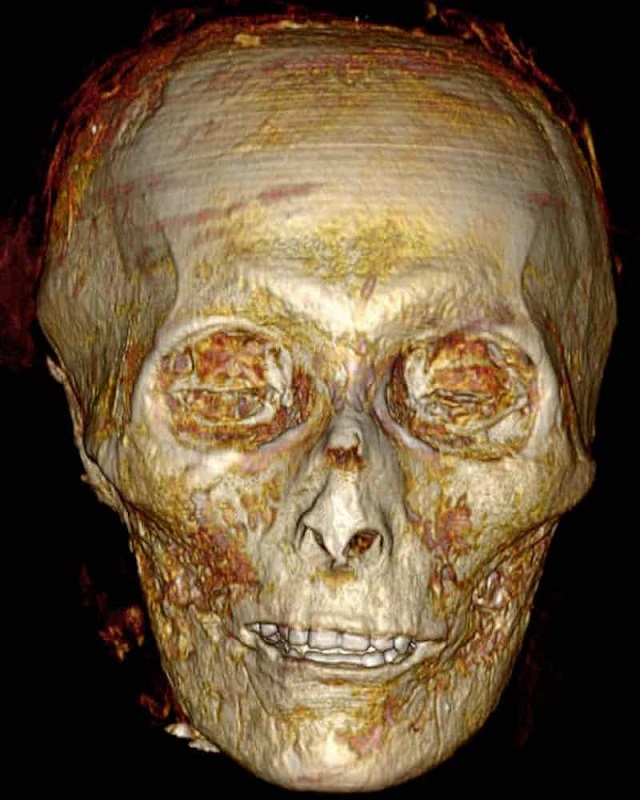 3B bilgisayarlı tomografi (BT) tarama teknolojisini kullanarak elde edilen sonuçlar benzersiz ve büyüleyici. Bulgular, firavunun görünüşü ve birlikte gömüldüğü mücevherlerin cömertliği hakkında ayrıntılı bilgi veriyor.