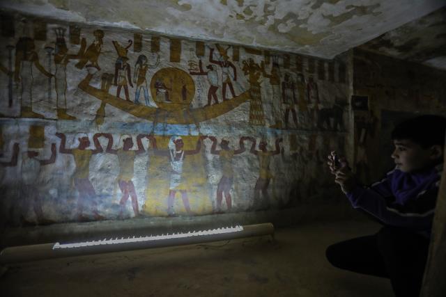 Kayalığın içinde yer alan Mısır'da yaklaşık 2 bin 600 sene önce hüküm süren 26. hanedan dönemine ait mezarlık, firan dönemlerinde kutsal önem atfedilen güneş ve ayın döngüsüne dair tasvirleriyle dikkati çekiyor.