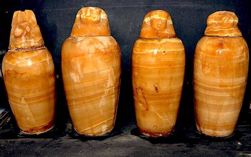 Eski Eserler Yüksek Kurulu Genel Sekreteri Mostafa Waziry, “Heykellerden biri boğa Apis, diğeri ise bir kadını tasvir ediyor. Bunların yanı sıra dört oğlunun Horus şeklindeki kaymaktaşı kanopi kavanozlarında, ölen kişinin adları ve unvanları yazıyor.” diyor.