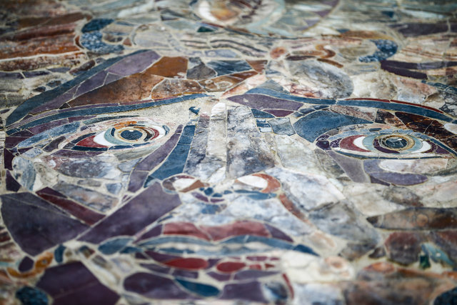 AA’nın haberine gçre M.S 1. yüzyılın ilk evrelerine dayanan, mitolojide “Gözlerine bakan kötü niyetli kişileri taşa çevirdiğine” inanılan “yılan saçlı, keskin dişli, dişi canavar” olarak bilinen Medusa’yı tasvir eden “Opus Sectile” tekniği ile renkli mermerlerden inşa edilen mozaiğin dünyada benzeri bulunmuyor.