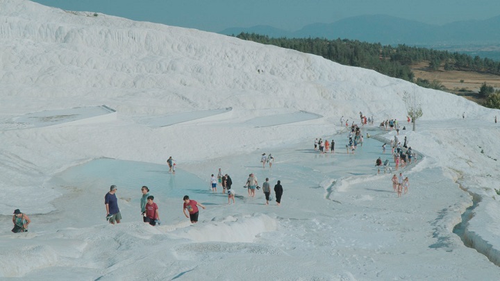 Film, UNESCO Dünya Mirası Listesi’nde yer alan Pamukkale travertenleri ile Hierapolis Antik Kenti’nin arkeolojik dokusunu merkezine alarak, eşsiz bir coğrafyanın sinematik kaydını sunuyor. Bembeyaz travertenlerin antik kentle kurduğu görsel ilişki, filmde “Hiera’nın duvağı” metaforuyla yorumlanıyor. Yönetmen, bu benzersiz manzaranın yalnızca turistik bir imge olarak değil, mitoloji ve hafıza katmanlarıyla birlikte ele alınması gerektiğini vurguluyor. Bu bağlamda film, doğal ve kültürel mirasın birlikte düşünülmesine katkı sağlayan görsel bir arşiv niteliği de taşıyor.