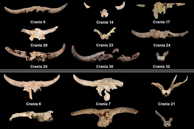 Mağarada bulunan boynuzlu kafatasların bir kısmı. C: Villaescusa, L., Baquedano, E., Martín-Perea, D.M. et al. 2026.