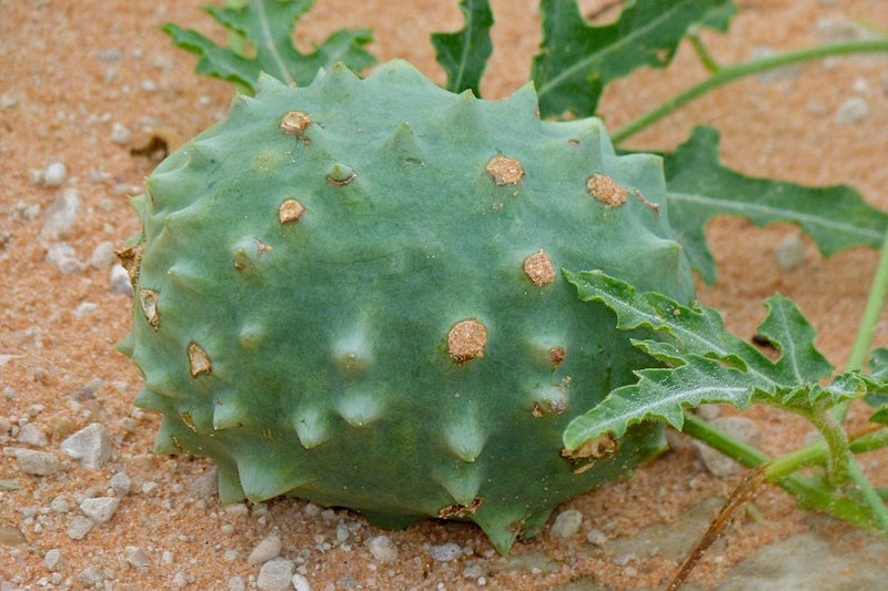 Güney Afrika’daki grupların, evcilleştirilmiş karpuzun yabani bir kuzeni olan Citrullus naudinianus’un köklerinden oklar için zehir yaptıkları biliniyor. C: Wikimedia Commons