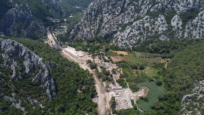 Kentin ortasından geçen derenin güney yamacındaki yoğun çam ve defne ağaçları nedeniyle bugüne kadar erişilemeyen mezar yapılarını, bitki temizliği sonrası gün yüzüne çıkardıklarını anlatan Öztaşkın, ilk kez mezar alanının hem karşı yamaçtan izlenebilir hale geldiğini hem de düzenlenen patikalarla ziyaretçilerin ulaşımına açıldığını vurguladı.