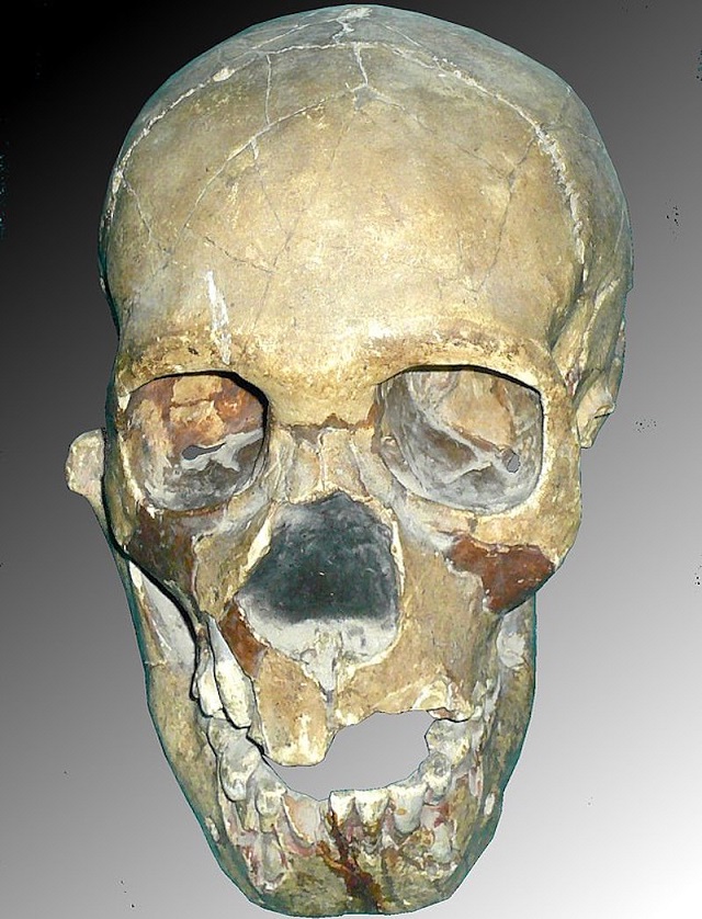 Yaklaşık 150 parçadan oluşturulan orijinal Neandertal kafatası.