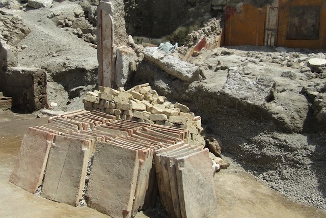 Pompeii Arkeoloji Parkı tarafından yakın zaman önce yapılan basın açıklamasına göre arkeologlar, aletler, kiremitler, kireç yığınları ve istiflenmiş tüf tuğlalarıyla dolu bir Roma inşaat alanı buldular.