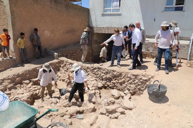 Başkan Baydilli, kazı başkanı Doç. Dr. Eylem Özdoğan'dan bilgi aldı.