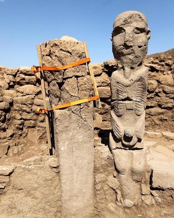 Taş Tepeler’in bir diğer önemli yerleşimi olan Karahantepe’de, geçtiğimiz yıl 2,3 metre yüksekliğinde, kaburgaları belirgin, omurga ve omuz kemikleri öne çıkarılmış oturur vaziyette bir heykel, kaya içine oyulmuş bir seki üzerinde zemine sabitlenmiş halde bulunmuştu. Heykelin bulunduğu mekânda duvara yerleştirilmiş bir akbaba heykeli ve yere bırakılmış taş tabaklar da ortaya çıkarılmıştı.