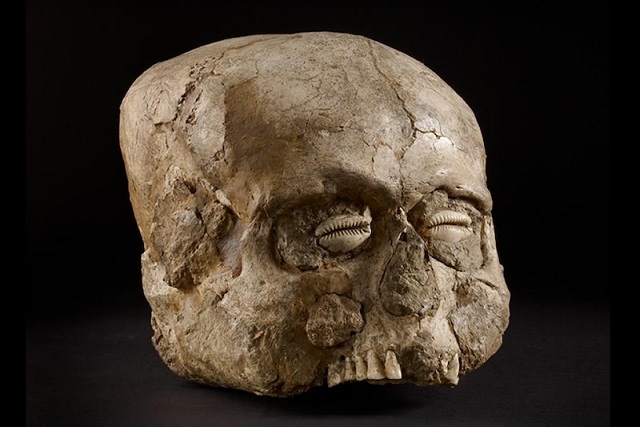 Eriha’da bulunan sıvalı kafataslarından biri. Göz boşluklarına deniz kabuğu yerleştirilmiş. C: Ashmolean Museum