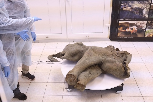 Rusya’dan bilim insanları, Sibirya’nın Yakutistan bölgesinde, sürekli don tabakasıyla kaplı alanda bulunan bir mamut yavrusunun olağanüstü iyi korunmuş kalıntılarını sergiledi.