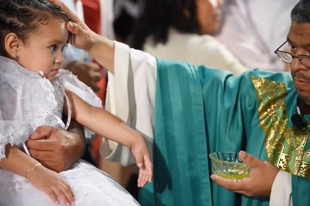Krizma (chrism) adı verilen kokulu ve kutsanmış zeytinyağı, kutsama ve arınma için kullanılırdı. MS 381 tarihli bir kilise konsili şunları kaydeder: “Sapkınlardan kurtarılanlar/kurtulmaya çalışanlar […] öncelikle alınlarına, gözlerine, burun deliklerine, ağızlarına ve kulaklarına kutsal krizma sürülür […], ve sonra onları vaftiz ederiz.”
