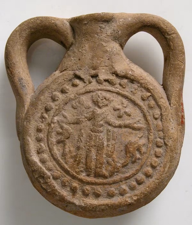 Hacılar, Aziz Menas’ın hac bölgesinden aldıkları yağı taşımak için bunun gibi kaplar kullanırlardı. C: The Metropolitan Museum of Art