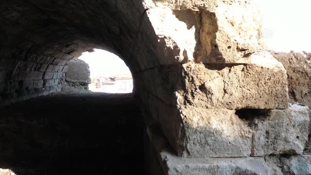 Arkeologlar tarafından "vomitoryum" olarak adlandırılan geçidin oturma sıralarını güçlendirecek kemer ve tonoz bilgisiyle inşa edildiği tespit edildi.