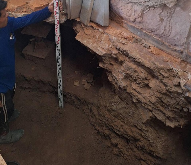 Yatan Buda heykelinin altında, dirsek ile göğüs bölgesi arasında seramik bir kapta metal süs eşyalarının keşfedildiği kazı alanı. Kaynak: Tayland Güzel Sanatlar Bakanlığı