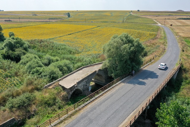 Tarihi köprünün çevresindeki ayçiçeği tarlaları da fotoğraf seferler için eşsiz bir manzara sunuyor.