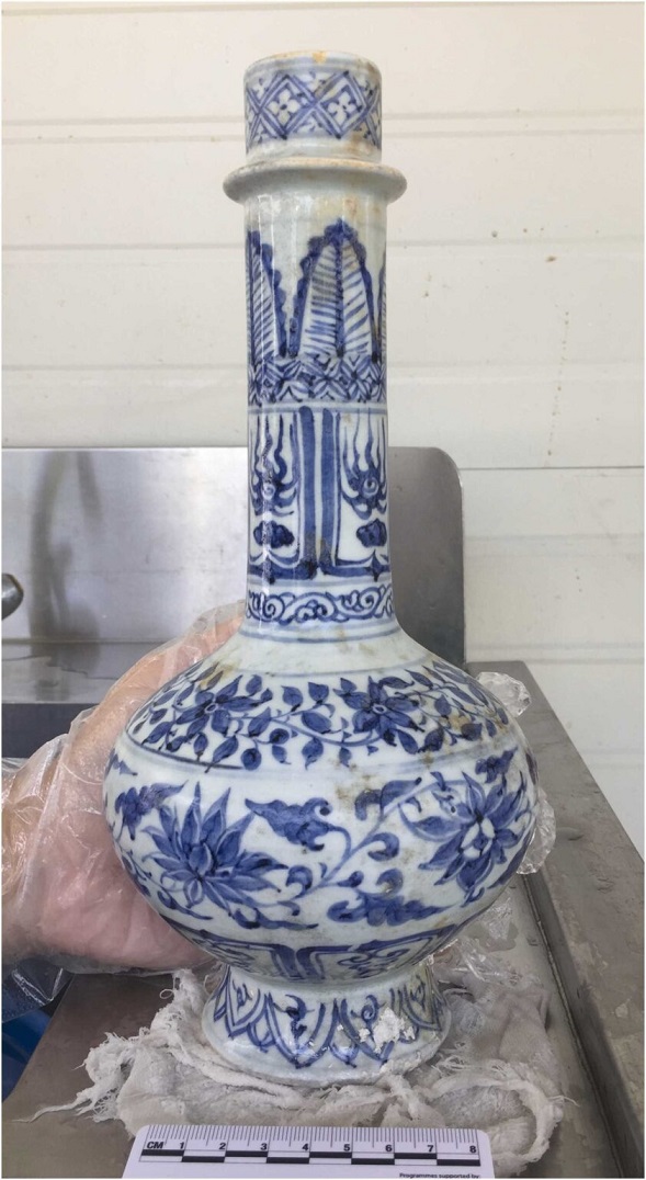 Bu buluntular, kontrollü bir batık kazısından bugüne kadar çıkarılan en büyük Yuan Hanedanlığı mavi-beyaz porselen koleksiyonunu içeriyor. Toplamda yaklaşık 136 kilogram mavi-beyaz seramik (2.350'den fazla parça) kurtarıldı.