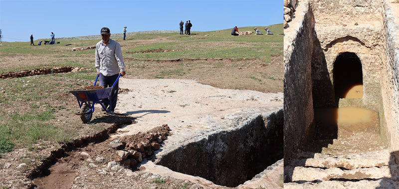 Adıyaman Müzesi Müdürü Mehmet Alkan, Kuyulu köyü yakınlarındaki çalışmalar sırasında gazetecilere, bölgenin tarihi hakkında bilgi verdi.
