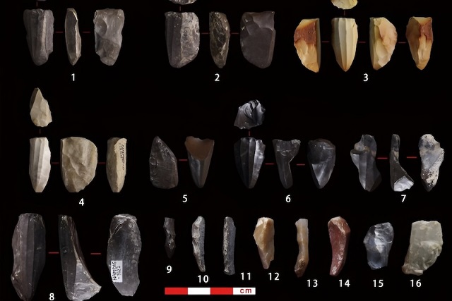 Tibet Platosu’ndaki mikro bıçak teknolojisi, Kuzey Çin’in güneyinden geliyor ve yaklaşık 15.000 yıl önce platonun kuzeydoğu kenarında ilk kez ortaya çıkmıştı. Bu teknoloji, 11.000 ila 10.000 yıl önce Kunlun Dağları ve Qingnan Platosu üzerinden Tibet Platosu’nun iç kesimlerine ulaşmış ve ardından tüm plato boyunca geniş bir alana yayılmıştı. C: Jin Yingshuai.