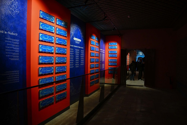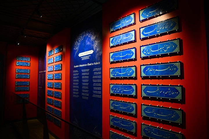 Galerinin dikkat çekici unsurlarından biri, Osman Gazi’den Sultan II. Selim’e kadar Osmanlı sultanlarının isimlerinin 16. yüzyıl çinileri üzerine bir bütün halinde yazılmış olmasıdır. Bu uygulama, çini sanatının yalnızca dekoratif değil, aynı zamanda tarihsel hafızayı taşıyan bir araç olarak da kullanıldığını ortaya koyuyor. Ayrıca 11. yüzyılda Tunuslu şair İbnü’n-Nahvi tarafından kaleme alınan Kaside-i Münferice’den seçilmiş beyitlerin işlendiği çiniler, edebiyat ve görsel sanatlar arasındaki ilişkiyi gözler önüne seriyor.