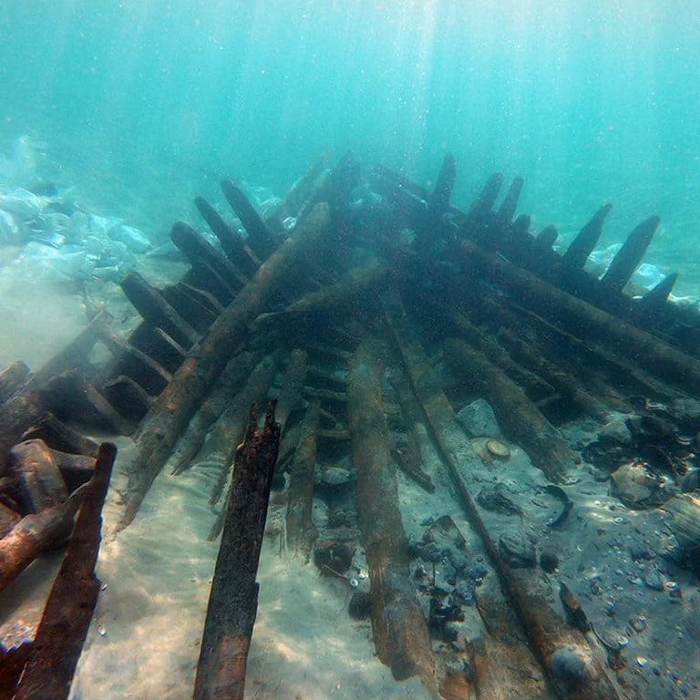 MS 648-750 tarihlenen gemi enkazı daha önce iki amatör dalgıç tarafından 2015 yılında bulundu. Ancak, dip dalgalar enkaza ulaşmaya izin vermemiş kalıntılar kumla kaplanmıştı.