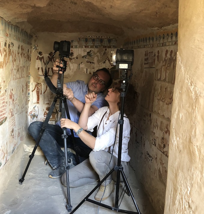 Çalışmanın yazarları Philippe Walter ve Catherine Defeyt, taşınabilir bilimsel cihazı kullanarak Luksor’daki Soylular Vadisi’nde ölçümler yapıyor. C: David Strivay, Liege Üniversitesi