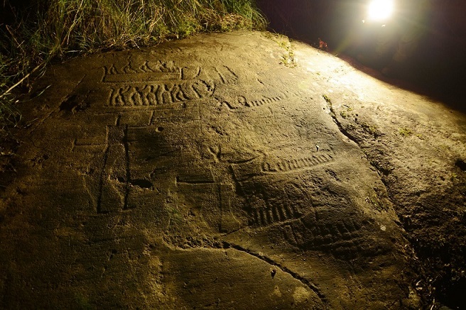 En dikkat çekici figürler arasında, İskandinav kaya sanatında tekrar eden ve son derece önemli bir motif olan büyük gemi oymaları yer almaktadır.