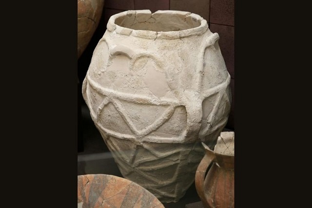 Sicilya’nın Castelluccio bölgesinde bulunan ve muhtemelen zeytinyağı depolamak için kullanılan Tunç Çağı’na ait çömlek (pithos). C: Fabrizio Garrisi/Wikimedia Commons